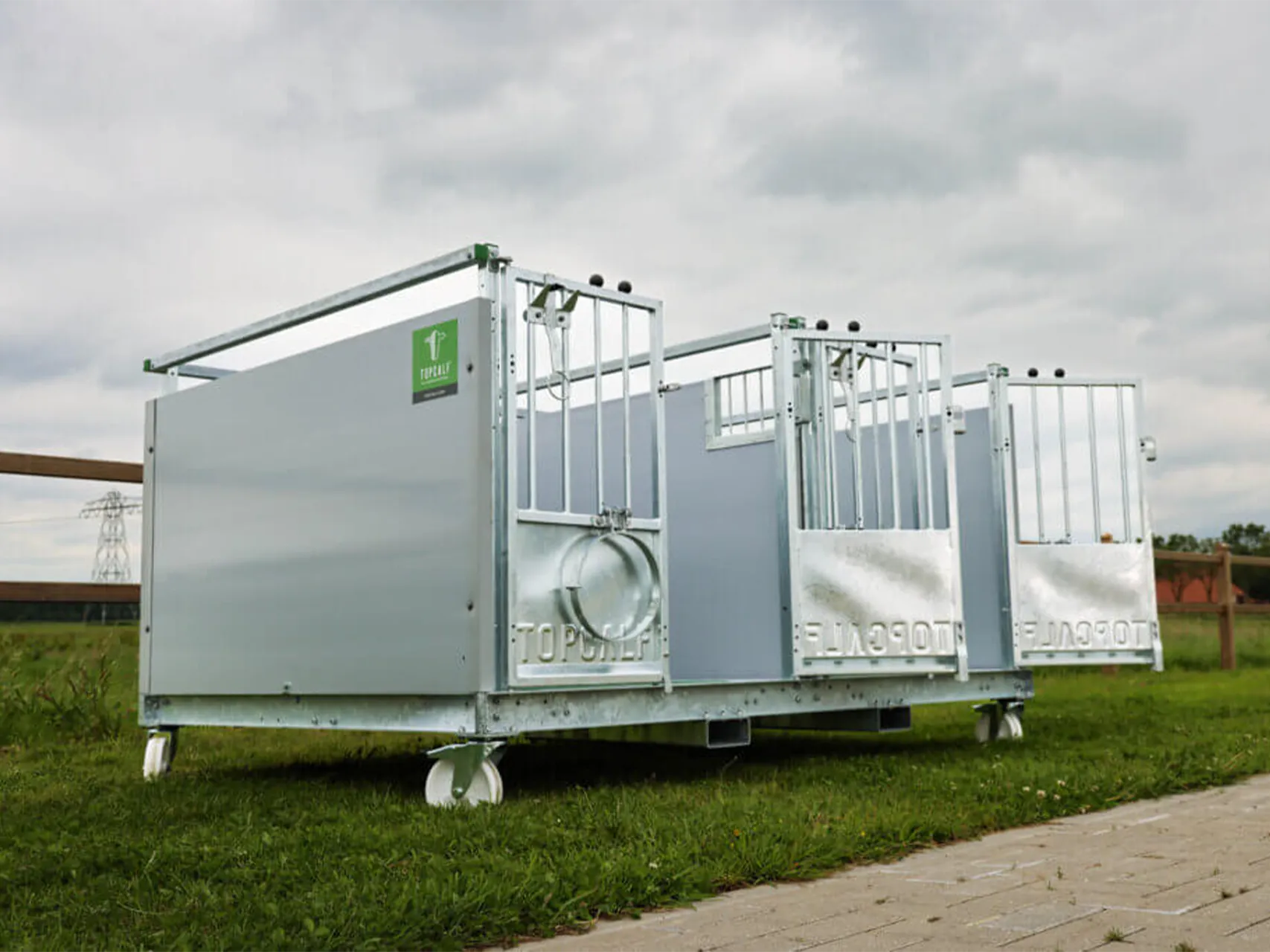 La Topcalf Quattro XXL EasyClean è una stalla mobile a box singolo. Grazie ai divisori rimovibili, il box può essere facilmente convertito in un sistema di stabulazione di gruppo per due o quattro vitelli, in modo che gli animali possano crescere insieme e sviluppare il loro comportamento sociale. La struttura in acciaio zincato a caldo con pareti in plastica (rimovibili), pavimenti a doghe rimovibili e un tetto in pannelli sandwich isolati è facile da pulire e offre una lunga durata.